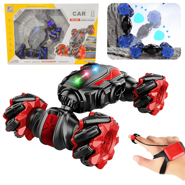 Un auto teledirigido que va en todas las direcciones , cambia de forma y responde a tus gestos gracias a su control tipo guante con sensor de gravedad .